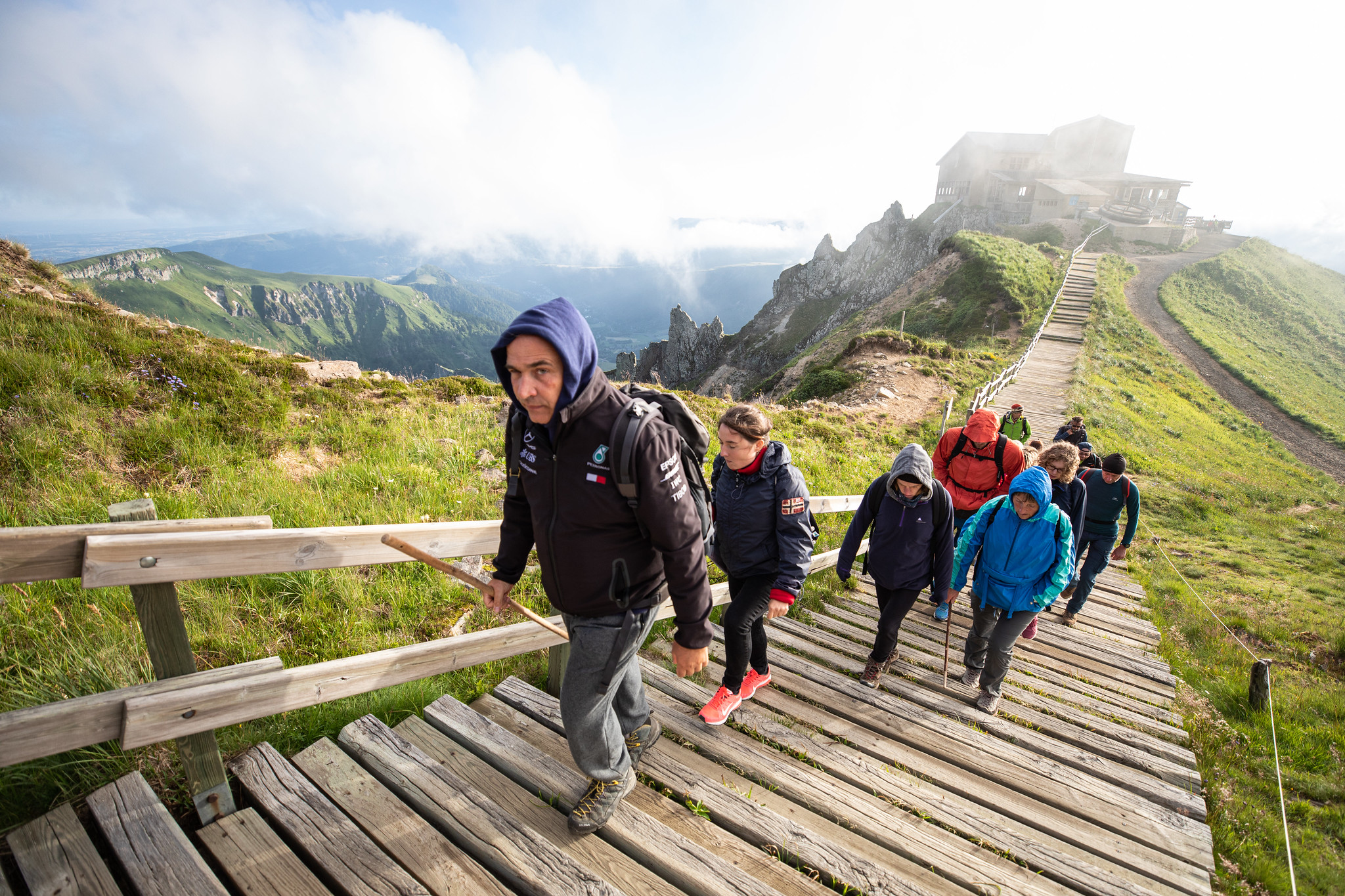 La randonnée est un sport qui permet de profiter de la montagne et des grands espaces en totale liberté. Que ce soit pour quelques heures ou pour de longues itinérances les pratiquants aiment avoir avec eux de quoi boire, manger et parfois dormir. Il faut une bonne connaissance de la montagne et des météos changeantes ainsi qu’un bon équipement pour faire face à tous les imprévus. La difficulté pour le photographe réside dans le fait qu’il doit lui aussi apporter ce matériel pour pouvoir suivre les groupes, mais également l’ensemble de son matériel photo… Il ne faut pas avoir le dos fragile et faire confiance à ses cuisses quand les pentes s’élèvent.